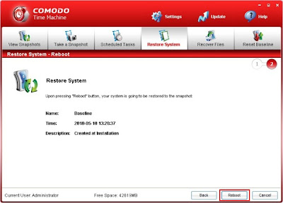 Comodo Time Machine é tão eficiente que nem é preciso aguardar até um momento crítico para aplicar sua recuperação. O software reinstala programas que foram deletados por acidentes, reverte processos que comprometem a máquina e reestrutura até a sua Área de trabalho.Para fazê-lo, dirija-se a aba “Restore System” (Restaurar sistema), escolha o momento em que deseja resgatar e clique em “Next”.