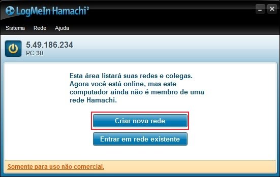 Em seguida, você observa que a rede criada já aparece na interface do seu Hamachi e está pronta para o uso.